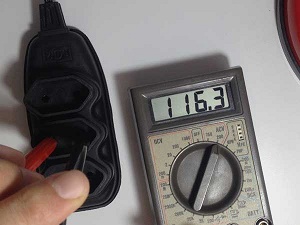 O valor medido foi de 116,3 V, dentro da normalidade para a rede elétrica convencional.