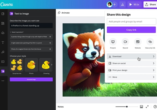 Usando texto ou voz, os usuários só precisam dizer ao Canva IA o que querem, seja fazer brainstorming, planejar campanhas ou criar materiais.