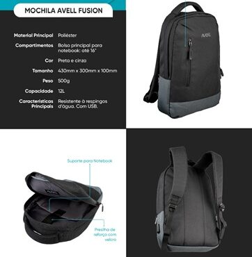 Outra novidade anunciada pela Avell, já disponível para venda, é o lançamento da nova linha de mochilas, que oferecem conforto e praticidade no transporte do dia a dia. A começar pelo modelo Fusion, que reúne capacidade para notebooks de 16” e é resistente à água. Já o modelo Travel foi desenvolvido para notebooks de até 17” e tablets de até 11”.