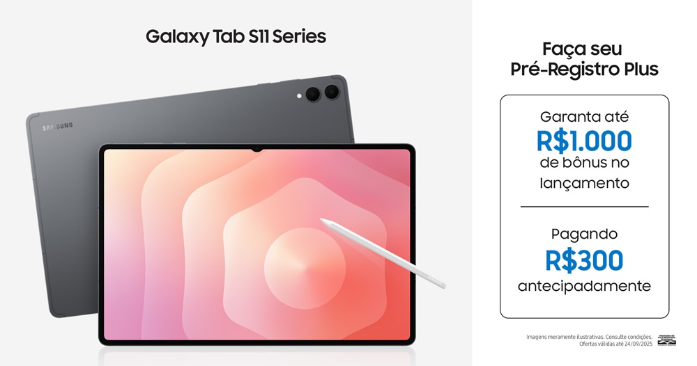 A Samsung acaba de anunciar as ações1 de Pré-Registro e Pré-Registro Plus, que oferecem benefícios exclusivos na aquisição de qualquer modelo da série de tablets premium Galaxy Tab S11, que será lançada em breve.