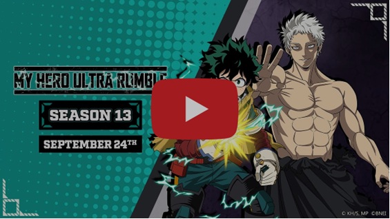 A Bandai Namco Entertainment America Inc. anunciou hoje o lançamento da Temporada 13 de MY HERO ULTRA RUMBLE, o jogo Battle Royale multiplayer gratuito inspirado no famoso anime. Esta atualização gratuita adiciona o herói principal da série, Izuku Midoriya, como personagem jogável, além do gacha por tempo limitado “Special Anniversary Roll”, novos trajes e muito mais.