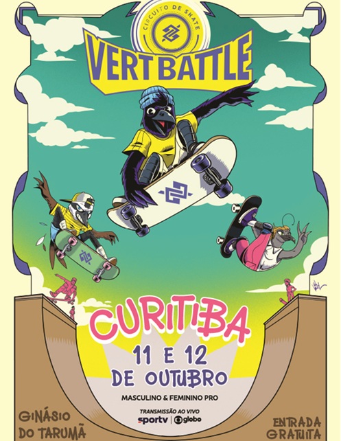 O Vert Battle chega à capital paranaense para a sua terceira etapa de 2025, consolidando-se como o maior campeonato de skate vertical do país. O evento acontece nos dias 11 e 12 de outubro, no Ginásio do Tarumã, com entrada gratuita mediante a doação de 1kg de alimento não perecível.