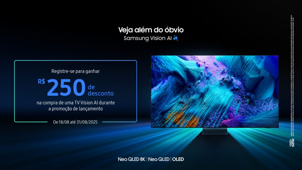 Basta acessar Samsung.com/br/tvs/handraiser/, preencher os dados e concluir a inscrição. O desconto será aplicado automaticamente na compra de um dos modelos de TV Vision AI elegíveis durante o período da promoção de lançamento, a partir da primeira semana de setembro.