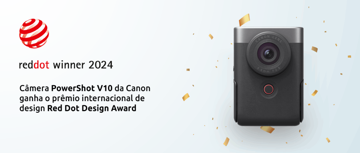 Câmera PowerShot V10 da Canon ganha o prêmio internacional de design Red Dot Design Award