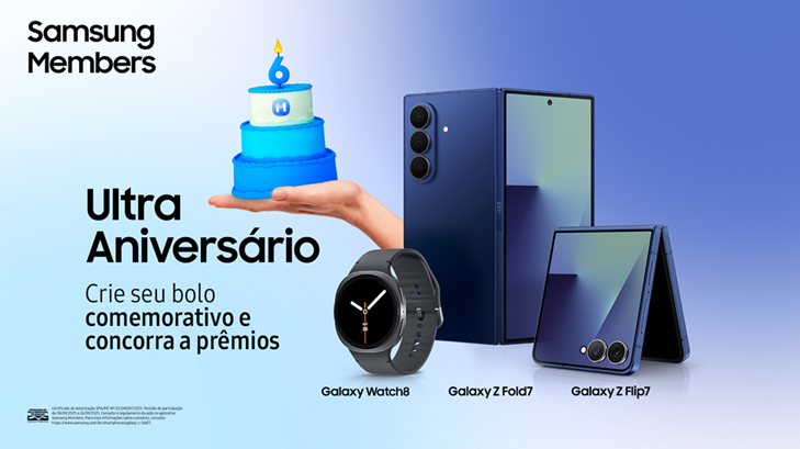 A campanha vai premiar os Samsung Members que criarem os três bolos de aniversário mais criativos para celebrar a data. Os prêmios serão um Galaxy Z Fold7 para o 1º lugar, um Galaxy Z Flip7 para o 2º lugar, e um Galaxy Watch8 para o 3º lugar. O resultado da promoção será divulgado no dia 14 de outubro de 2025.