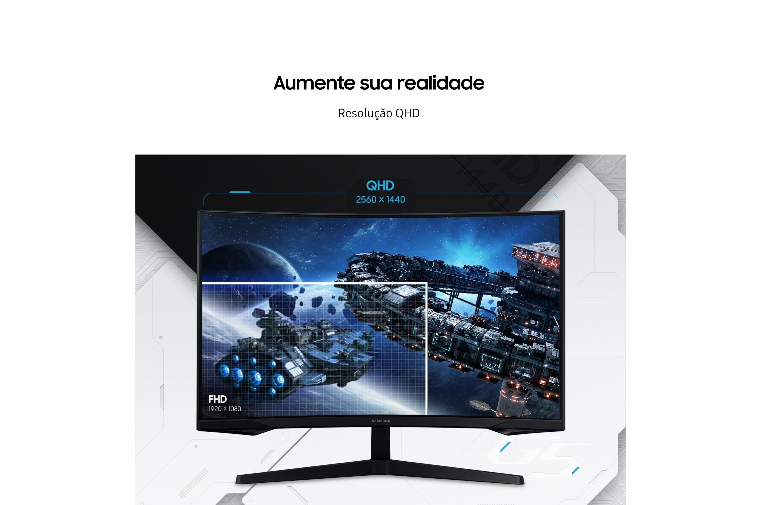 Os jogos ganham um realismo aprimorado graças a uma tela com curvatura de 1000R, fazendo com que as cenas mais vívidas envolvam o jogador. Além disso, o monitor traz uma densidade de pixel 1.7 vez maior do que uma tela FHD, por conta de sua resolução QHD, que revela detalhes incríveis em imagens mais nítidas. O produto conta com uma taxa de atualização de 165 Hz1, que elimina o atraso para uma jogabilidade emocionante e ultrassuave. É possível combater os inimigos assim que eles aparecem com um tempo de resposta de 1 ms (MPRT)2 para quadros com o mínimo de desfoque.