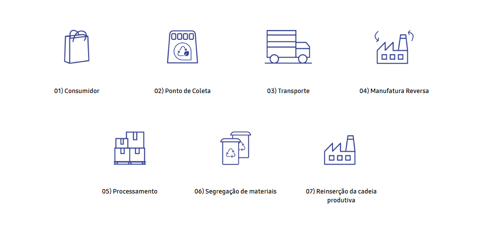 No Brasil, consumidores podem descartar eletrônicos de pequeno e médio porte como fones de ouvido, pilhas, carregadores, celulares, tablets, notebooks e baterias, diretamente nas urnas de coleta disponíveis em lojas e Smart Centers Samsung espalhados pelo país. Já os produtos de grande porte, como TVs, refrigeradores e máquinas lava e seca, contam com um sistema de descarte por meio de agendamento, facilitando o processo para o consumidor. Veja detalhes na página oficial.