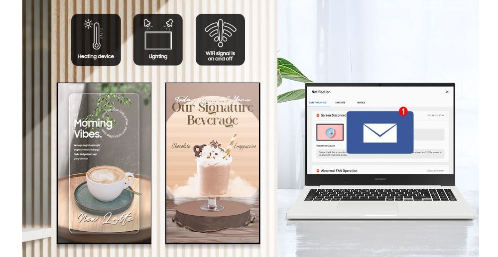 Com a eficiência como um dos principais pilares da transformação digital, a Samsung oferece o gerenciamento de múltiplas lojas de forma integrada, por meio do Samsung VXT. A solução em nuvem visa gestão centralizada de conteúdo, possibilita atualizar vitrines digitais e telas de forma remota e padronizada, além de abrir espaço para veiculação de mídia própria dentro do ponto de venda. Outra possibilidade é o uso de plataformas corporativas de gestão integrada de energia e operação, que conectam e monitoram diferentes equipamentos da loja, como climatização, iluminação, displays e sensores, em um único painel. Esses sistemas utilizam análise de dados e inteligência artificial para identificar ineficiências, ajustar automaticamente parâmetros de consumo, criar rotinas automatizadas e acompanhar indicadores de desempenho em tempo real. Com isso, as empresas conseguem reduzir custos operacionais, otimizar o conforto térmico e aumentar a segurança do ambiente.