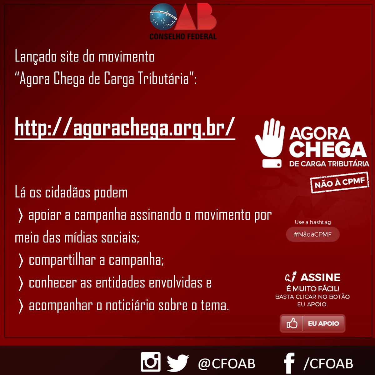 Mais informações poderão ser encontradas pelo link: http://www.agorachega.oab.org.br/