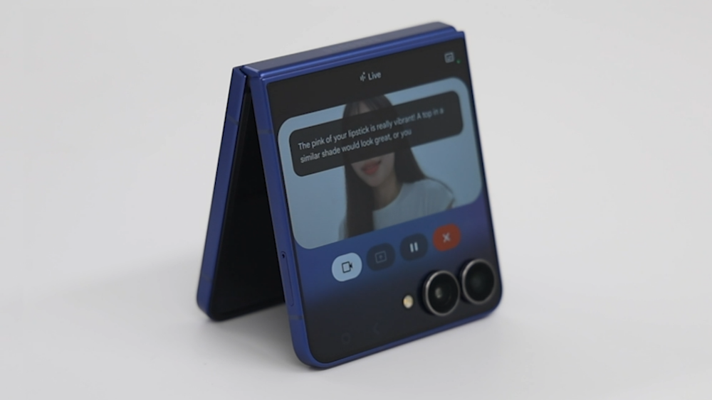Pressionar longamente o botão liga/desliga ativa o agente de IA para iniciar o Google Gemini6. Após abrir a visualização da câmera e fazer uma pergunta como “Você pode recomendar uma cor de roupa que combine com a maquiagem de hoje?”, o assistente inicia uma conversa natural, fornecendo sugestões de estilo em tempo real para complementar o visual.