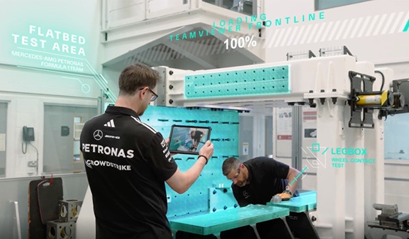 Com a adoção das soluções TeamViewer Frontline, que utilizam tecnologia espacial, o processo de testes na Mercedes-AMG PETRONAS F1 Team mudou completamente. A plataforma pode ser executada em um simples tablet, com diretrizes de RA que aparecem ao vivo na tela do dispositivo e que sobrepõem a montagem de teste no espaço físico e com sequências animadas. Esse processo oferece visibilidade imediata à equipe sobre o que vai em cada lugar, garantindo que todas as peças relevantes estejam presentes e corretamente instaladas.