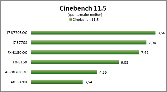 [box_dark] Resultados – Cinebench 11.5 x64 e x264 Benchmark:[/box_dark]